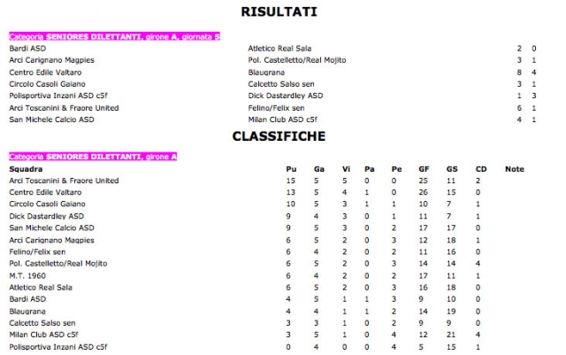 » Risultati e classifica al 18.11.2013 - Calcetto Femminile